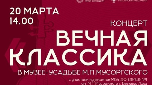 Музыкальная встреча в усадьбе Мусоргского: «Вечная классика» прозвучит 20 марта
