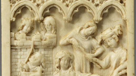 На дощечке для письма XIV века художник проиллюстрировал легенду про любовные похождения Вергилия. Я прочитала оригинальную версию этой истории во французской книге 14 века. Так как в интернете пикантную часть как раз опускают (ту, что в в верхней части). А зря. Поясню позже, почему. Дело было так. Великий поэт Вергилий влюбился в одну горожанку. Она это узнала и пригласила его не необычное свидание. Мол, приходи ночью к моей стене. Я опущу корзину. Залезешь в нее, а я подниму ее до своего балкона...