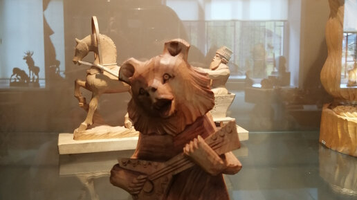 В посёлке Богородское, что в 25 км. от Сергиева Посада Московской области, находится Богородская фабрика художественной резьбы по дереву, а при фабрике - музей. Заходим в него и начинается наша экскурсия. При входе, за стеклом расположена мастерская, где работают мастера. Богородскую игрушку делают из липы, дерево, при этом, возят из Нижегородской области. Здесь на фабрике липу ошкуривают, затем сушат в ангарах. Сушка занимает ни много ни мало от двух до шести лет! Только после этого дерево становится пригодно к изготовлению игрушки, иначе может потрескаться...