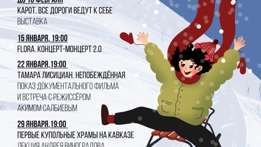 💙💙💙💙💙💙💙💙 😂 Сохраняйте афишу и не забывайте, что с 31 декабря по 11 января музей закрыт. 📅 15 января в 19:00 ⭐ Flora. Концерт-монцерт 2.0 😝 Уже второй раз Флора Бичахчян будет петь в Армянском музее. За последние полгода у артистки вышли два сингла, которые мы обязательно услышим вживую. Вспомним Арно Бабаджаняна — в январе отмечается 105-летие легендарного композитора. И, конечно, будем говорить, смеяться и петь хором. 📅 22 января в 19:00 ⭐ Показ документального фильма «Тамара Лисициан...
