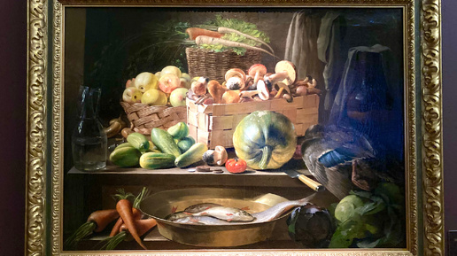 За окном мороз и слякоть, а в Тициановском зале музея цветы и фрукты. Приглушённый свет и мягкий колорит оформления в сливово- вкусный тонах наполняет пространство.