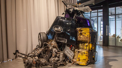 В композиции из кучи деталей, встречающей посетителей в пермском музее современного искусства PERMM, с первого взгляда угадываются брутальные черты «Гелендвагена» — культового автомобиля 1990-х и 2000-х годов. Инсталляция притягивает посетителей своей необычной конструкцией и формой. Можно даже подумать, что это наглядная агитация против превышения скорости или очередная акция экоактивистов, протестующих против выбросов. Однако всё совершенно иначе, содержание этого объекта глубже, чем может показаться на первый взгляд...