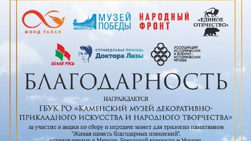 Благодарность музею за участие в акции «Живая память благодарных поколений»