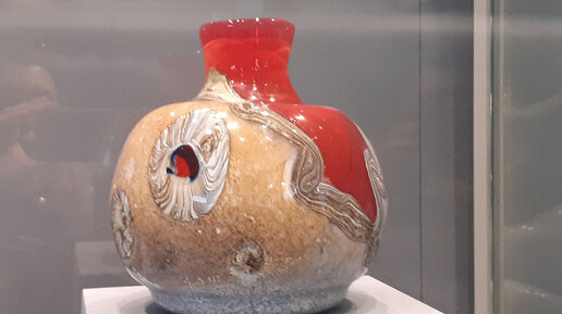 Неожиданным было для меня встретить в музее керамики большое количество витрин с изделиями из стекла и хрусталя. Но вдруг увидела те, что запали в душу и не отпускают вот уже долгое время. Несколько изделий из стекла с венецианской нитью. Это вазы конца 1930 -х годов. А поступили они в музей в 1941 г. Изготовлены на стекольном заводе "Красный гигант" прибор для ликера "Муаровая лента", изготовлен на том же стекольном заводе в 1939 г. прибор для крюшона, 1930-е годы, тоже завод "Красный гигант". Очень красивый! Обратите внимание на форму стаканов, форму самой крюшонницы...