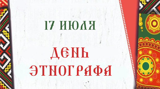 17 июля в России отмечается День этнографа – неофициальный профессиональный праздник исследователей, изучающих культуру, традиции и быт народов мира и всего того, что формирует материальную и духовную культуру народов. Этот день приурочен к дню рождения Николая Николаевича Миклухо‑Маклая (17 июля 1846 г.), выдающегося русского этнографа, антрополога и путешественника, который определил важность культурного разнообразия и противостоял расизму. Он внёс огромный вклад в изучение коренных народов Океании...