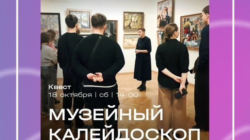 Квест «Музейный калейдоскоп» 🎨 Квест «Музейный калейдоскоп» в Музее изобразительного искусства ХХ–ХХI вв. – это увлекательное путешествие по залам музея, где каждое произведение – это загадка, ожидающая своего открывателя. Вы получите карту с фрагментами репродукций картин из постоянной экспозиции, будете исследовать залы и находить произведения по фрагментам...