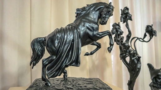 Уральцы настолько суровые, что художественные изделия они изготавливают из чугуна. Однако в городе Касли проживают творческие люди, поэтому каждое изделие из чугуна здесь - шедевр. Мы посещали музей еще в маленьком здании, некогда входившим в состав купеческого имения: Сейчас музей переехал в бывший заводской госпиталь. В 2023 году мы застали капитальный ремонт здания и не знали, что здесь будет. Экспонаты в музее уместились в одном зале. Многие работы узнаваемы. Как, например, чугунная статуэтка "Укрощение коня"...