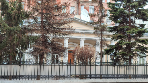 В начале Кропоткинского переулка, если со стороны Большого Левшинского переулка, слева две старинные усадьбы. В начале 19 века это было одно владение. Капитана Бориса Васильевича Хвощинского. Владение капитана сгорело. В 1812 году. И он его продал. По частям. Ту часть, что на Большой Левшинский выходит, купил капитан Евгений Николаевич Богданов. А другой участок перешел к Львовым. Потом к Гагариным. При княжне Прасковье Алексеевне Гагариной и была построена эта классическая московская усадьба. Шесть белых колонн...