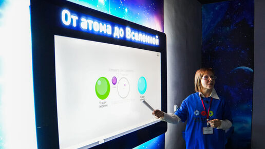 В музее занимательных наук «Кварки», расположенном в нижегородском ЦУМе на 3-м этаже, появился новый обзорный научный экспонат под названием «От атома до Вселенной». Уже сейчас можно посетить обзорные мини-экскурсии и прикоснуться к удивительным макро- и микромирам. В ноябре 2025 года в музее состоялось торжественное открытие нового экспоната – интерактивной видеоинсталляции «От атома до Вселенной». Проект стал возможен благодаря грантовому благотворительному конкурсу «Росатом» в 2025 году. Была...
