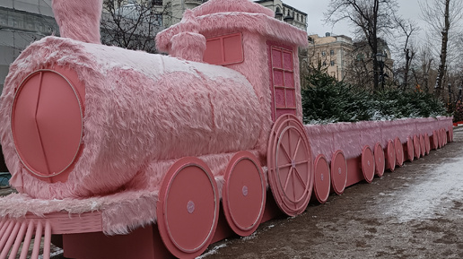 Меховой паровоз на Тверском бульваре в Москве