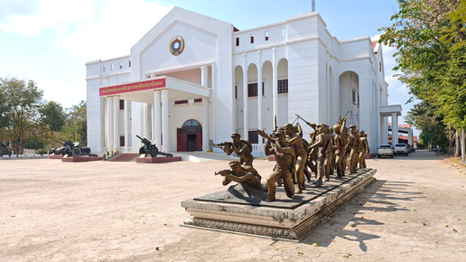 После первых впечатлений о Вьентьяне, полученных от посещения местных храмов и прогулок по главному проспекту с триумфальной аркой Патусай, я решил спрятаться от солнца в тени. А лучшая тень и прохлада в любом городе — это музей. Сначала я собирался зайти в People's Public Security Museum (что-то вроде Музея народной общественной безопасности), но он был закрыт. Напротив располагался Lao People’s Army History Museum, он же Музей истории народной армии Лаоса. Туда и отправимся. Центральный символ...