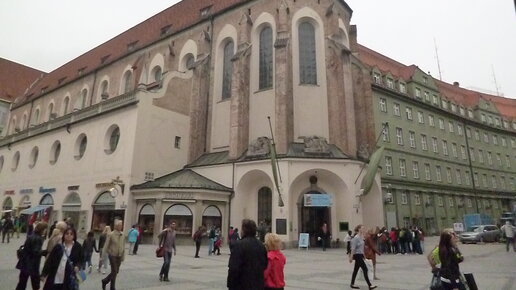Бывшая Августинская церковь , принадлежавшая Августинскому монастырю и построенная в 13 веке. Её ещё называли августинским аббатством или церковью аббатства св. Иоанна Крестителя и Иоанна Евангелиста. В 1803 году аббатство было распущено, а церковь разоблачена. Церковь сначала использовалась как платный зал. Церковь была повреждена во время Второй мировой войны. Она был перестроена в 1962-64 годах Эрвином Шлайхом для размещения Немецкого музея охоты и рыболовства. В сам музей мы не ходили, но решили сфотографироваться с жанровыми скульптурами...