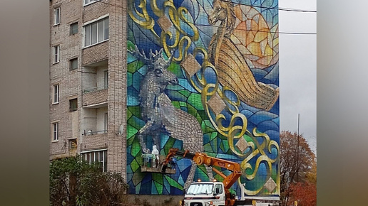 В Новгородской области продолжается фестиваль уличного искусства «Страницы истории». Московский художник Андрей Кузнецов работает над созданием огромной картины на стене одного из домов в Парфино. Источником вдохновения для мурала стал герб Парфинского округа, сообщила пресс-служба ЖКХ и ТЭК Новгородской области. Золотая ладья на гербе напоминает об известном торговом пути «из варяг в греки», который проходил по реке Ловать. Синий цвет символизирует множество водоемов, которых в Парфинском округе более сотни...