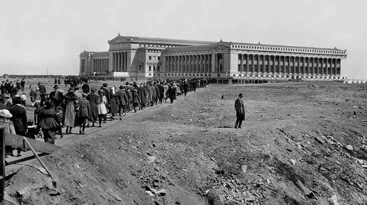 Как и почти в любой древней фотографии в этой много загадок. Почему такое большое здание стоит совершенно одно посреди поля? Почему на земле нету травы, растений и деревьев, даже в далеке нету ничего такого? Из-за...