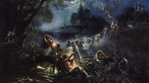 Иван Крамской Русалки Крамского - бледные утопленницы, словно в саванах, вышедшие на берег лунной ночью. Художник признавался, что сюжет картины навеян повестью Гоголя «Майская ночь, или Утопленница» из цикла «Вечера на хуторе близ Диканьки»...