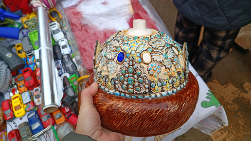 Хотя я тут торжественно закрыла сезон уличных подмосковных блошиных рынков, но охота ж пуще неволи😆 Поехала, пока в столице выключили дожди. На Салтыковку - её я люблю больше "Вернисажа" и "Левши". Пусть Яндекс-карты и пугали сообщением, что рынок временно не работает. Всё работает, всё на месте. Грязно лишь очень - дожди его размыли. Но разве любителя старья и барахла грязюка остановит? 😆 Как контрастно с обстановкой смотрится самый роскошный встреченный здесь в эту субботу сервиз - невероятно прекрасный сервиз "Горюн-трава" авторства Смирнова, Вербилки...