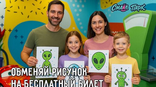 🔥🔥🔥 Идем бесплатно в Смайл Парк на ВДНХ с рисунком семьи С 7 по 20 октября можно получить билет в парк развлечений за рисунок! 📍 ВДНХ, Павильон №55 Смайл Парк - это 11 увлекательных аттракционов, квестов, музеев и лабиринтов. Как принять участие: 👉 Приходи в Смайл Парк на ВДНХ. 👉 Принеси рисунок своей семьи на листе формата А4 — изобрази свою семью в виде инопланетян! 🛸 Как обменять рисунок на билет: — Кассир примет твой рисунок и выдаст 1 бесплатный билет...