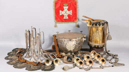 Коллекция военных исторических духовых и ударных музыкальных инструментов