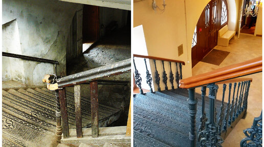 Едем в усадьбу заводчиков Мосоловых в Дубну. Мы были здесь в 2011-м, когда дом доживал, как казалось, сейчас у усадьбы открыточный вид, в ней музей, ресторан, загс и гостиница. А хотите покажу, как было в 2011-м? В те «страшные времена» барский дом больше напоминал канареечную коробку с резными окнами, мрачными «тюремными коридорами», лепниной, увитой паутиной, и чудом сохранившейся чугунной лестницей с перилами из деревяшек, подвязанными старыми колготками и обмотанными проволокой. К тому же в доме не было нормальных коммуникаций...