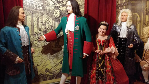 Хотите посмотреть, как выглядели знаменитые люди? Нет, не на картинах, на самом деле? Тогда вам в Музей восковых фигур. В городе таких несколько. А я пошла в Петропавловскую крепость, потому что гуляла неподалеку. Сразу на входе приятно удивило известие о том, что фотографировать можно со вспышкой. Здорово! Обычно в музеях этого не разрешают. Хотя меня это не очень спасло - фотоаппарат устал, поэтому пришлось щелкать телефоном. Ладно, давайте посмотрим, кто здесь)) У входа сидит мадам Тюссо, как будто наблюдает за посетителями...
