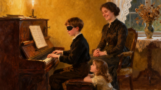 «Слепой музыкант» — повесть Владимира Короленко о мальчике Петре Попельском, который родился слепым в семье зажиточных помещиков во второй половине XIX века. Воспитанием мальчика в основном занимается его дядя Максим, стараясь сделать из него самостоятельную и сильную личность. Матушка Петра, Анна Михайловна, поддерживает сына, развивает его интерес к музыке и покупает ему фортепиано. Пётр рано проявляет музыкальные способности. Его спасают музыка, поддержка близких и дружба с соседской девочкой Эвелиной...
