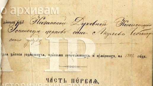 Село Акулево. Метрическая книга о родившихся за 1905-1908 гг. 1 января 1905 — 31 декабря 1908 ГИА Чувашской Республики (ГИА ЧР), фонд № 557, опись № 8, дело № 17, стр. 48 скан. Метрическая книга, данная из Казанской Духовной Консистории в Успенскую церковь села Акулева Чебоксарского уезда для записи родившихся, браком сочетавшихся и умерших на 1908 год. Часть первая. О родившихся. Стр. 48 скан. Июнь. № 101. 10 числа рождения. 20 числа крещения. Александр. Родители: Успенской церкви села Акулева псаломщик Михаил Семенов и законная жена его Пелагея Борисова, оба православного вероисповедания...