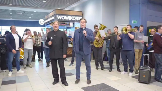 Музыканты Кремлевского оркестра в аэропорту Домодедово развлекли заждавшихся пассажиров военными песнями