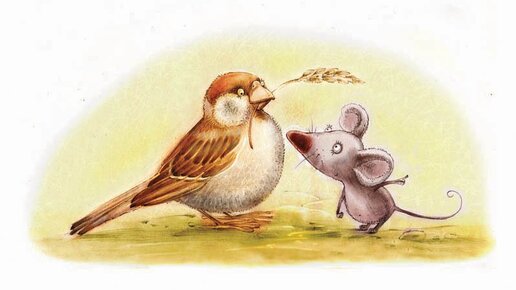 Жили-были мышь да воробей. Дружно, согласно жили-поживали, ни ссор, ни обид не знали. Перед всяким делом совет друг с другом держали, любую работу вместе выполняли. Однажды мышь с воробьём нашли на дороге три ржаных зёрнышка. Думали-подумали, что с ними сделать, и надумали поле засеять. Мышка землю пахала, воробышек-боронил. Славная рожь уродилась! Мышь острыми зубами споро сжала её, а воробей крылышками ловко обмолотил. Зёрнышко к зёрнышку собрали они весь урожай и стали делить его пополам: одно...