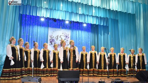 Песнями богата родина моя. Прославляет песня милые края. Звонкая, веселая, грустная порой Льется по России вольною рекой. Это слова из «Русской песни» Галины Горелой, прозвучавшей на юбилейном концерте. Песни на самом деле лились одна за другой, перемежаясь номерами ансамбля народного танца «Калинка», детской фольклорной группы «Дуняша», соло на балалайке Сергея Александровича Зыкова. Полтора часа яркого, звучного, завораживающего действа на сцене прошли на одном дыхании. Какое роскошество нарядов,...