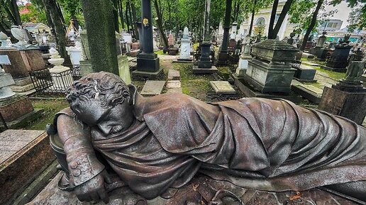 Здравствуйте уважаемые читатели и подписчики моего канала. Сегодня я хочу рассказать вам о двух, наверное, самых известных и необычных памятниках, которые можно увидеть на территории бывшего Лазаревского кладбища. Необычны они, прежде всего тем, что выполнены в совершенно нехарактерной для русской школы мемориальной скульптуры манере, когда усопший изображается в полный рост, но в лежачем положении.