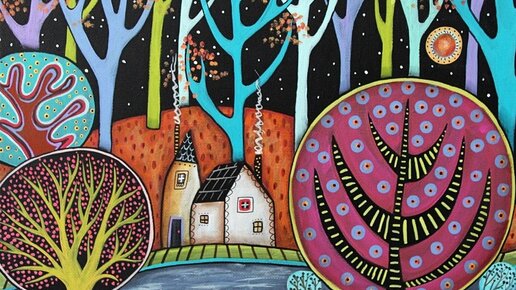 Главной темой творчества американской художницы Карлы Жерар стали домики. Карла пишет абстрактные картины в наивном стиле, предлагая зрителю массу вариаций сказочных городов и деревенских пейзажей. Яркие и декоративные, её работы притягивают взгляд, будоражат необычными цветами и узорами, и вызывают желание с детским любопытством разглядывать эти сказочные теремки и фантастические деревья. Художница использует разные материалы, наиболее излюбленные: акрил и масляная пастель. Её работы популярны и узнаваемы во всём мире, а своеобразный стиль вырабатывался годами...