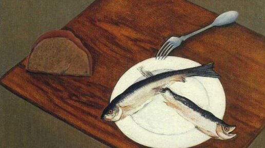 Понятное дело, тут можно даже не заглядывать в дату написания картины, всё предельно ясно и так, и по содержанию картины, и по стилю: военный коммунизм. Давид Штеренберг (1881—1948). Натюрморт с селёдкой. 1917—1918