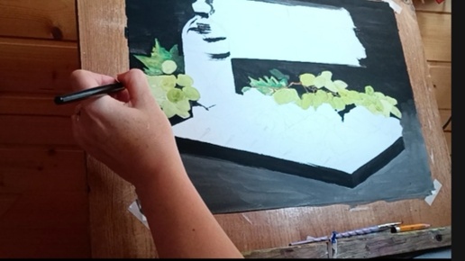 Рисую натюрморт "Шашлык и виноградная гармония" гуашью, поэтапно
