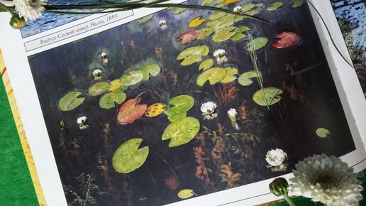 Таинственностью веет от одного лишь слова "ненюфара"...В голове тут же проносятся строки готических романов. Не оттого ли, что именно в них цветы эти были впервые упомянуты? Между тем, ненюфара - это водяная лилия. Прекрасный цветок, воспетый для нас Исааком Левитаном... И правда, когда мы впервые смотрим на картину, мы видим лишь цветы в воде...Однако, присмотревшись, мы замечаем в ней "второе дно".Под лежащими на поверхности воды листьями ненюфар мы вдруг открываем...загадочный подводный мир. Для того, чтобы показать нам его, художник рисовал картину, стоя в лодке...
