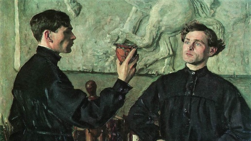 Михаил Нейстеров 1862-1942. Родился в Уфе в Башкирии, на Урале. Не очень учился в гимназии, но учитель по рисованию в гимназии отличал его способности. Был быстрый, юркий и непоседливый. Его отправили в Москву в МЖВиЗ, учиться у Василия Перова. На ранние работы сильно повлияли передвижники. Он женился в 1885 году, родилась дочь Оля, портреты которой он часто писал, а жена Мария Маркуновская умерла вскоре после родов. Этот момент в его жизни сильно повлиял на дальнейшее творчество. Нестеров очень тосковал по жене, поэтому рисовал её в образе ангелов и христовых невест...