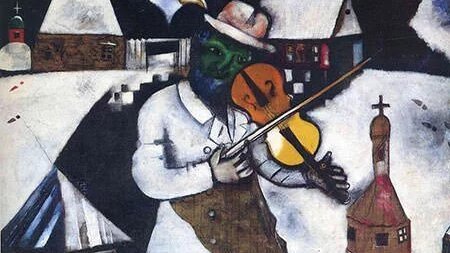 Марк Шагал крупным планом: рассматриваем, как написана картина "Художник и его невеста" (45 секунд)