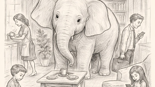 И все делают вид, что его нет. Это и есть метафора невидимого слона — того, что в семье очевидно, но не называется...