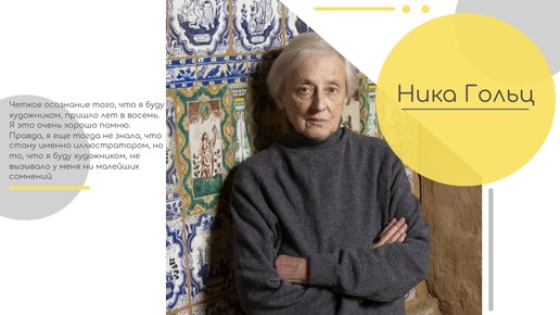 В рамках реализации библиотечного проекта продолжаем рассказывать о творчестве знаменитых иллюстраторов. Сегодня в центре нашего внимания – Ника Гольц. Ника Георгиевна Гольц (1925-2012) — российская художница, известная в первую очередь благодаря своим замечательным книжным иллюстрациям. Любовь к рисунку ей буквально передалась «по наследству», так как ее отцом был Георгий Гольц - театральный художник и график. В начале своей карьеры Ника увлекалась фресковой живописью, создала фресковые панно в здании детского музыкального театра имени Натальи Сац...