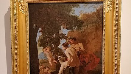 Картина французского художника Никола Пуссена прожила довольно интересный период времени своего существования. Предполагается, что "Венера, Фаан и путти" была закончена еще в далеком 1630 году, а к 1740 годам находилась у семейства П. Кроза. Первая покупка картины для Эрмитажа состоялась в 1772 году императрицей Екатериной II. Но картина так и не удостоилась инвентарной отметки Эрмитажа и была подарена фавориту императрицы князю Орлову, где находилась вплоть до смерти самого князя. После кончины князя Орлова, картина была передана в Мраморный дворец...