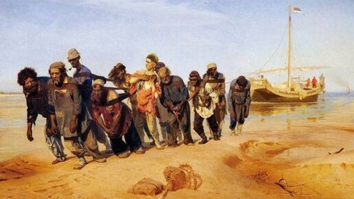 Рекою рабства и тоски!.. " Николай Некрасов "Дедушка Мазай и зайцы" (1870). Мазай во время половодья спасал на лодке множество зайцев. "О Волга!.. колыбель моя! Любил ли кто...