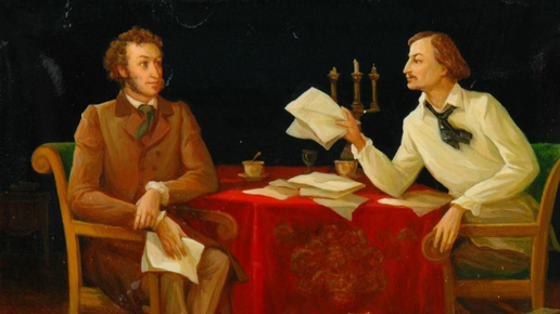 Александр Пушкин и Николай Гоголь — два великих имени в истории русской литературы. Можно сказать, что между ними существовала связь, основанная на взаимных уважении и интересе. Гоголь восхищался Пушкиным, когда учился в гимназии, перечитывал и переписывал его произведения. Когда в 1828 году он приехал в Петербург, то решился навестить великого поэта, однако потерпел неудачу — слуга сказал ему, что Пушкин спит, так как всю ночь играл в карты. Их знакомство произошло только через три года на даче у поэта Петра Плетнёва...