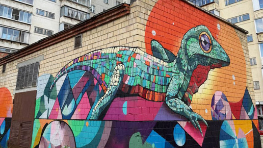 В Челябинском дворе по адресу Чичерина, 17а была найдена ящерица На мурале мы видим ящерицу, украшенную яркими самоцветами, которые сверкают в лучах света. Она символизирует силу и мудрость природы, а также связь с уральскими мифами и легендами, особенно сказами Павла Бажова. Художник Николай Касаткин реализовал эту идею на стене во дворе Чичерина, 17а за 3 рабочих дня. Николай Касаткин г. Озерск, Челябинская область Художник‑альпинист, дизайнер, 3D‑моделлер, скейтер! Кстати, Николай — художник в 3‑ем поколении...
