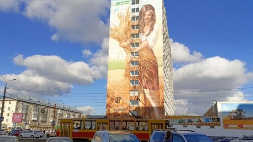 Вместо серых стен. В Барнауле создали мурал на 13-этажном доме