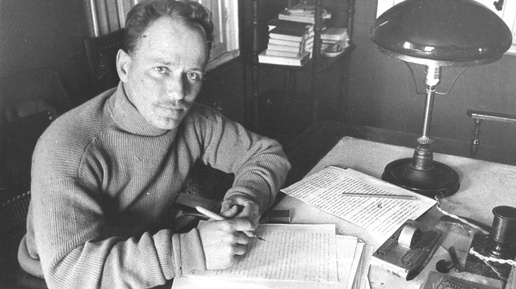 М.А. Шолохов в рабочем кабинете. ст. Вёшенская. 1936 г.