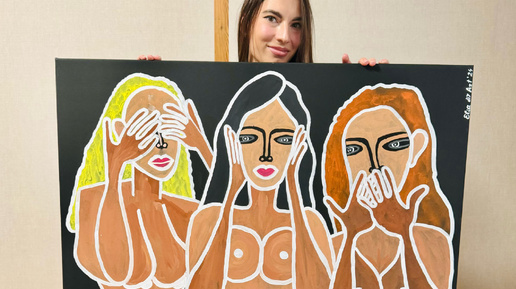🎨 Материалы: 🎨 🔸Акриловые краски 🔸 Холст на подрамнике черный 75*100см Какая вкусная вещь получилась! Я довольная, как слон! Очень давно вынашивала эту идею, меня всё терзал вопрос: 🤔 может три отдельные картины 🤔 может с себя срисовать 🤔 может образ животных А потом как-то рука сама потянулась на эскиз (он кстати был не такой привлекательный и милый, в отличие от получившейся картины) Да) возможно. Задача для именно в этих образах была передать посыл не о том, какой я распрекрасный художник, а о том, как глубока эта тема и как она может проявится на картине...