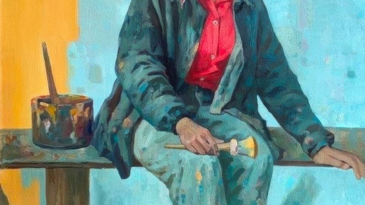 Нурмухаметов Рашит Мухаметбареевич (04.09.1925, Уфа - 23.08.1986, Уфа). «Маляр А. Хужахметова». 1981 год. Холст, масло; 175,5 х 116 см.; (Башкирский государственный художественный музей имени М.В. Нестерова)...