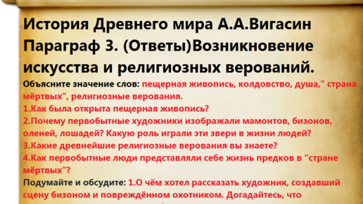 История Древнего мира А.А. Вагасин. Параграф 3. Возникновение искусства и религиозных верований (Ответы)