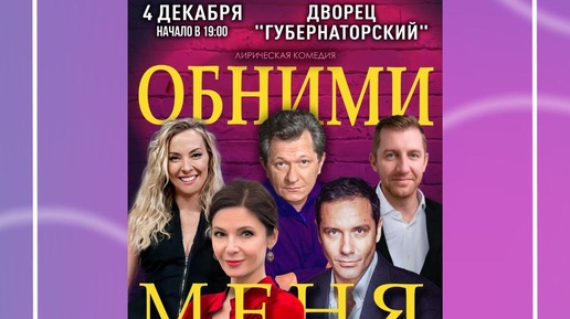 Спектакль "Обними меня" 🎭 История рассказывает об одной супружеской паре, которая тихо-мирно жила своей жизнью. Появление нежданных гостей нарушает семейную идиллию. Неожиданный поворот событий ставит всех героев перед странным выбором… Cюжет держит зрителя в тонусе и интригует. Спектакль живой, в нем есть атмосфера, энергетика, юмор, оптимизм,...