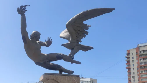 Конечно, правильное название "Летящий Прометей", но в заголовке не ошибка, потому что памятник этот "перелетел" с одного места на другое. А ещё это единственный в Петербурге памятник, имеющий только одну точку опоры. Раньше эта скульптура находилась перед кинотеатром "Прометей" на проспекте Просвещения. Её установи перед кинотеатром в 1982 году. А изготовлена скульптура была в начале 1980-х на ныне не существующем Петрозаводе и являлась дипломной работой Романа Красницкого. Как тогда...