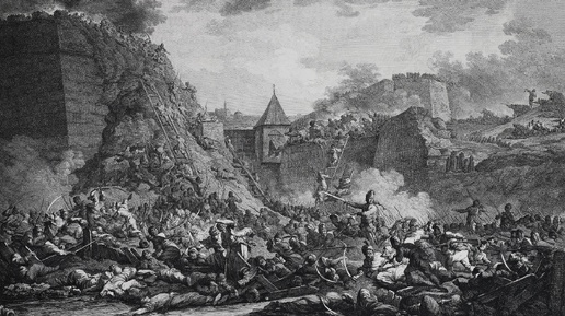 Штурм Очакова. Гравюра А. Барча. 1792 г. Штурм Очакова — одно из сражений во время Русско-турецкой войны 1787—1791 гг.. Штурм был предпринят русскими войсками 6 (17) декабря 1788 года после осады крепости, которая продолжалась с начала июля до начала декабря 1788 года. Ссылка: https://ru.wikipedia.org/wiki/Штурм_Очакова Бригадир, барон фон Мейендорф Казимир Иванович командовал 4-й колонной во время штурма Очакова 6 (17) декабря 1788 года в ходе Русско-турецкой войны 1787–1791 годов. В состав его...